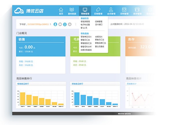博優(yōu)云POS是基于云端技術(shù),為商家提供會員管理、消費收銀、會員營銷、移動支付、大數(shù)據(jù)分析、會員充值、商家微信門戶、積分營銷、會員等級管理、導(dǎo)購提成、商品庫存管理、會員互動等功能的一站式店鋪管理解決方案