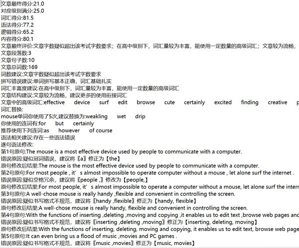 目前支持小學(xué)、初中、高中、四級(jí)、六級(jí)、托福、雅思、GRE、考研等類(lèi)別的英語(yǔ)作文批改