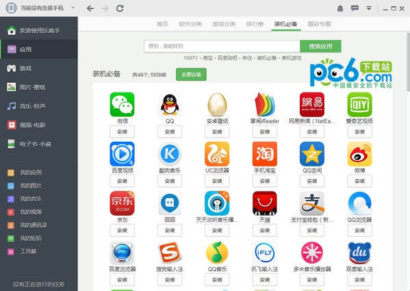 電腦輕松管理手機(jī)中的應(yīng)用、聯(lián)系人、短信、圖片、應(yīng)用、音樂和視頻;批量操作,簡單高效