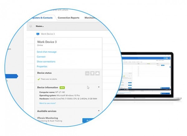 擴(kuò)展遠(yuǎn)程設(shè)備儀表板:在遠(yuǎn)程連接期間,可以節(jié)省更多時(shí)間獲取有關(guān)設(shè)備所需的信息??焖僮R(shí)別任何潛在的問(wèn)題并進(jìn)行解決。查看有關(guān)運(yùn)行時(shí)間、序列號(hào)、硬盤驅(qū)動(dòng)器運(yùn)行狀況、電池電量(以及是否插入電源)以及 BIOS 版本和日期的信息。