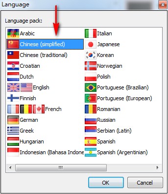 本軟件安裝時默認為英文界面,需要自己手動設置成中文,設置方法如下圖: