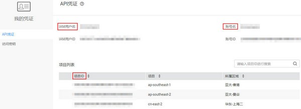 在“我的憑證”頁(yè)面的項(xiàng)目列表中查看用戶名、用戶賬號(hào)和項(xiàng)目ID,如KKX小編分享的圖片所示: