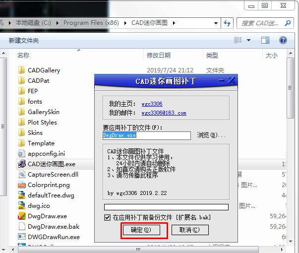 3、把破解補丁復制到CAD迷你畫圖文件夾中