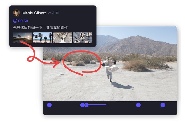 用畫筆在畫面上標記問題點,精確到幀,團隊成員可實時在線查看,并一鍵導出修改清單。還可以上傳參考文件更清晰地表達想法。