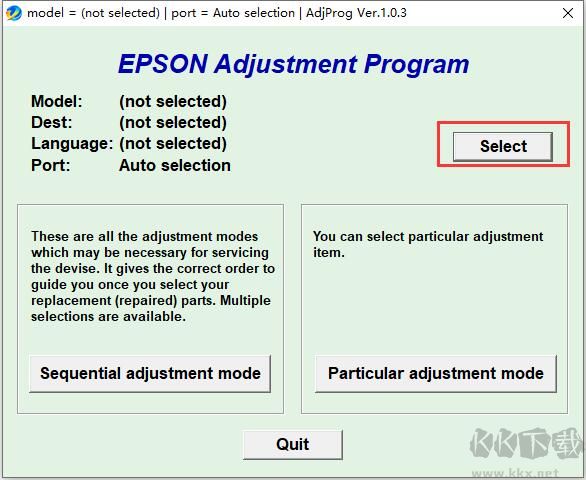3、點(diǎn)擊[Particular adjustment mode]進(jìn)入主菜單. 如下圖