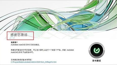 7、然后我們就可以發(fā)現(xiàn)激活成功了,出現(xiàn)這個界面說明您已經(jīng)激活AutoCAD2016了,點擊【完成】就可以打開CAD2016正常使用了。