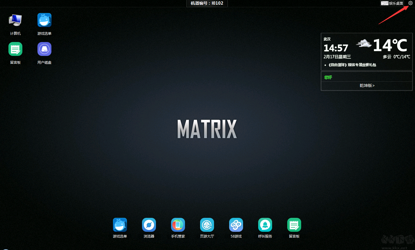 易樂游乾坤版系統(tǒng)桌面可以選擇系統(tǒng)自帶桌面或乾坤版娛樂桌面,兩個桌面的切換方法如下圖所示: