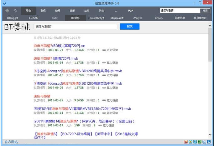 4、支持眾多資源搜索,BT種子、迅雷鏈、磁力鏈接、P2P、電騾等資源。