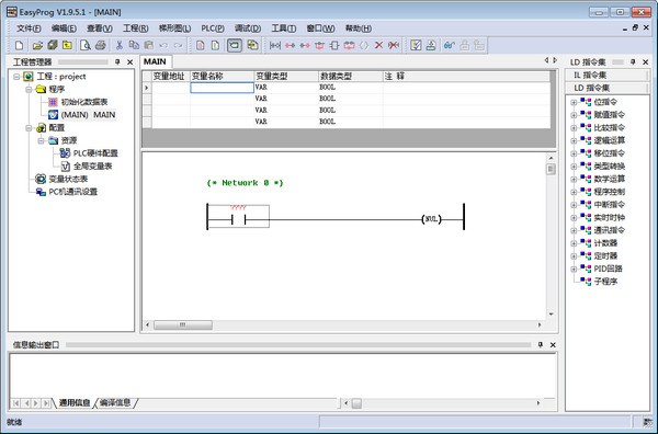EasyProg是一款能夠?yàn)橛脩魩硪粋€(gè)完全的,使用方便、功能完善的編程自然環(huán)境,提供了豐富的指令集,支持IL(指令表)、LD(梯形圖)兩種編程語言,同時(shí)EasyProg提供了靈活的硬件配置方式以使用戶能夠自由、方便地進(jìn)行硬件配置。