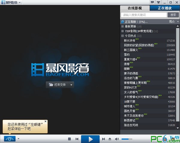 暴風(fēng)影音播放器是一款由視頻影音播放平臺(tái),暴風(fēng)影音播放器能夠兼容絕大多數(shù)的視頻及音頻格式。暴風(fēng)影音最新的左眼技術(shù),還可以利用GPU有效提升視頻畫(huà)質(zhì)。