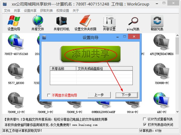 kkx小編為大家分享的這款【快共享】是一款支持XPWIN7WIN10電腦之間局域網(wǎng)文件共享的一款快捷共享工具,使用簡(jiǎn)單,打開軟件后根據(jù)設(shè)置向?qū)гO(shè)置一下即可完成共享,非常的簡(jiǎn)單,也可以通過該工具快速搜索局域網(wǎng)中的電腦共享打印機(jī)使用連接!