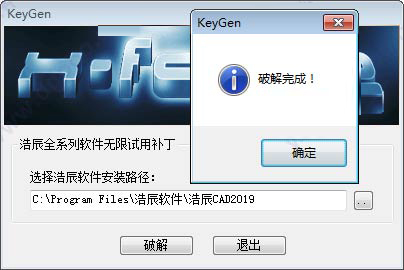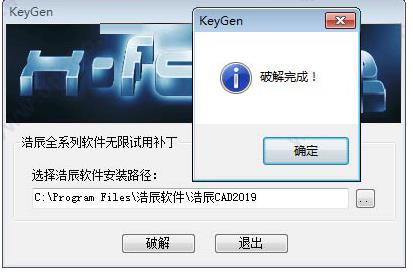 3、選擇軟件安裝目錄【C:\Program Files\浩辰軟件\浩辰CAD2019】(如安裝目錄不對(duì),可以手動(dòng)選擇),點(diǎn)擊破解即可;