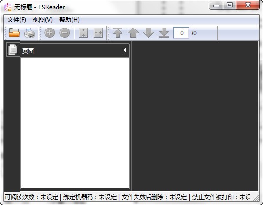 TSPReader(TSP文件閱讀器)可以方便快捷的瀏覽外發(fā)TSP組件打印的外發(fā)文檔,只能使用TSP文件閱讀器查看TSP組件打印的外發(fā)文檔,否則無法打開已加密的TSP文件。TSPReader界面由標(biāo)題欄、控制面板、工作區(qū)、菜單欄、狀態(tài)欄等多個(gè)界面元素組成。TSP文件閱讀器底部的狀態(tài)欄明確顯示文檔閱讀限制條件,方便用戶查看當(dāng)前可閱讀次數(shù)和文檔過期時(shí)間,簡單而用功能強(qiáng)大的一款TSP文件閱讀器!