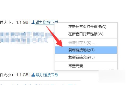 4、接下來我們需要獲取Bt種子或磁 力鏈接地址:通常在磁 力鏈接下載頁面中,通過右擊對應的“磁 力鏈接下載”,從其右鍵菜單中選擇“復制鏈接地址”項即可。