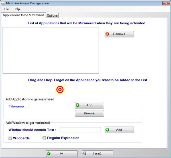 Maximize Always是一款多功能的程序最大化管理工具,此工具內(nèi)置了多個功能模塊,不僅能夠?qū)﹄娔X桌面中的應(yīng)用程序進(jìn)行窗口管理,還能同時將其最小化,當(dāng)然也能將其最大化,最大化管理非常靈活,可以指定一個或者多個應(yīng)用程序作為指定的目標(biāo),這樣非常有助于用戶在工作時需要不能自定義調(diào)整窗口的程序進(jìn)行管理;借助此工具,它使用戶可以自動啟動任何指定的應(yīng)用程序并使之保持最大化,這對于啟動和經(jīng)常保持最大化的常用應(yīng)用程序用戶來說非常有用,并使您的應(yīng)用程序使用更加方便。