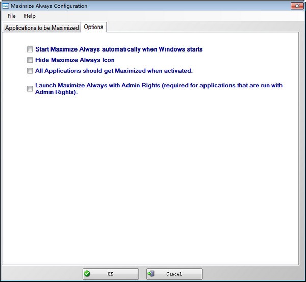 Maximize Always是一款小巧易用的一款程序窗口最大化管理工具軟件,通過該程序設(shè)置后讓電腦程序每次運(yùn)行都是最大化的方式,能夠幫助用戶在啟動任務(wù)程序時保持窗口最大化,有效節(jié)省在啟動和保持最大化常用程序的時間,非常不錯的一款程序最大化管理工具。