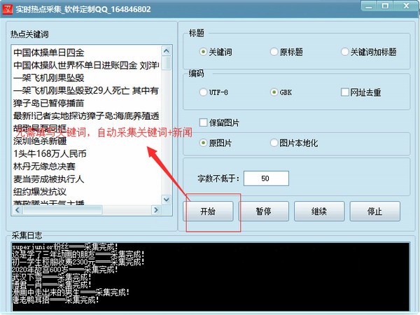 無需填寫關(guān)鍵詞,點(diǎn)擊開始自動(dòng)采集關(guān)鍵詞+新聞