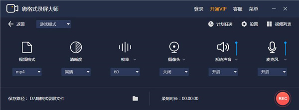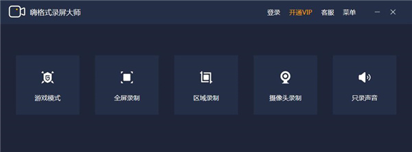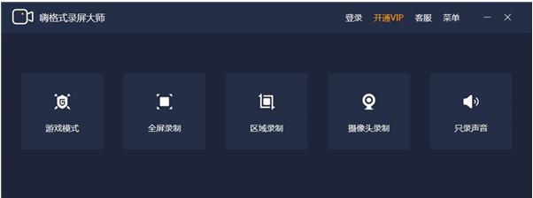 可以選擇“游戲模式、全屏錄制、區(qū)域錄制、攝像頭錄制、只錄聲音”五種錄制模式。