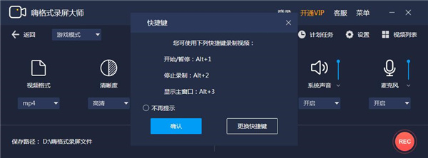 嗨格式錄屏大師是一款非常易用的錄屏軟件,界面非常簡潔,軟件提供了幾種屏幕錄制模式給用戶選擇,游戲模式、全屏模式、區(qū)域模式、設(shè)想頭模式、只錄聲音,對于初用者來說非常友好,很簡單的就可以學(xué)會錄制屏幕,并且還可以更加高級一些的給每個模式設(shè)置參數(shù),錄制不同的效果。需要錄制屏幕的朋友不要錯過。