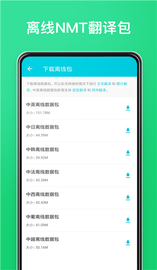 2、離線翻譯:適用離線翻譯作用全部免費(fèi)字典翻譯運(yùn)用,出國(guó)旅行旅游沒(méi)網(wǎng)絡(luò)也可以正常翻譯英文、日語(yǔ)、韓文、法文、西班牙語(yǔ)、葡萄牙語(yǔ)、越南語(yǔ)等。