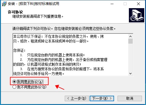 1、下載解壓,獲取極致下料板材標(biāo)準(zhǔn)版安裝包,這里運(yùn)行exe安裝,選擇同意條款;