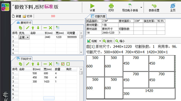 4、可將最算料的切割計(jì)劃方案導(dǎo)出來(lái)到Excel,有益于制做各種各樣企業(yè)報(bào)表。