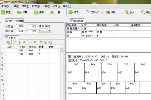 已知板材原材尺寸,已知要切割的板材尺寸,計(jì)算如何排版切割最省材料,以及原材用量。