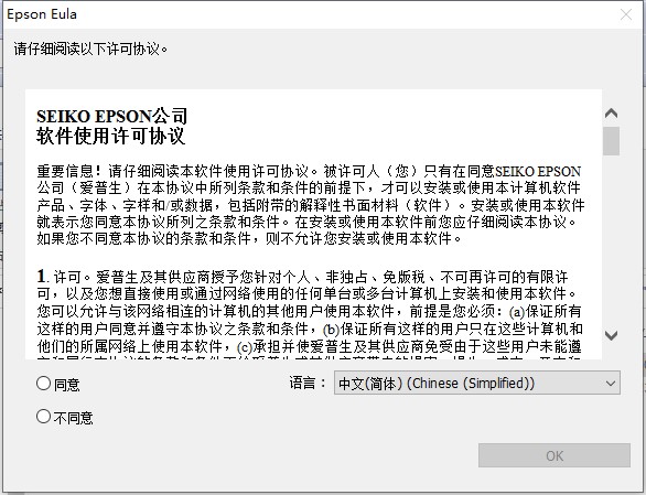 4、軟件許可協(xié)議點(diǎn)擊同意,如果上一步忘記選擇語言在這里也同樣可以選擇,點(diǎn)擊OK即可。