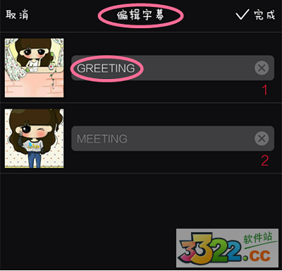 2)點擊進入字幕編輯界面,將灰色區(qū)域的字幕刪掉后,編輯你自己的字幕,一般來說要求字符或者英文,不能寫中文。而且字符長度有限制,建議大家使用簡單的單詞