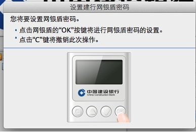 1、首次使用網(wǎng)銀盾會(huì)彈出設(shè)置建行網(wǎng)銀盾密碼的提示窗口,如kkx分享的圖片: