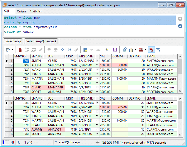 SQL對話框容許您鍵入一切SQL句子或幾個(gè)句子,并且在網(wǎng)格中查詢或編寫結(jié)論。結(jié)論網(wǎng)格適用按實(shí)例查看方式以百度搜索密集的特殊紀(jì)錄。大家可以快速地從歷史緩沖區(qū)域中啟用之前實(shí)施的SQL句子。SQL在線編輯器給予與PL/SQL在線編輯器同樣的強(qiáng)勁作用。