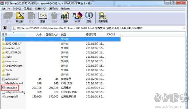 1. 在KK下載站下載到SQL Server 2012軟件后,然后右擊“cn_sql_server_2012_x64.iso”文件。選擇“解壓到cn_sql_server_2012_x64”。