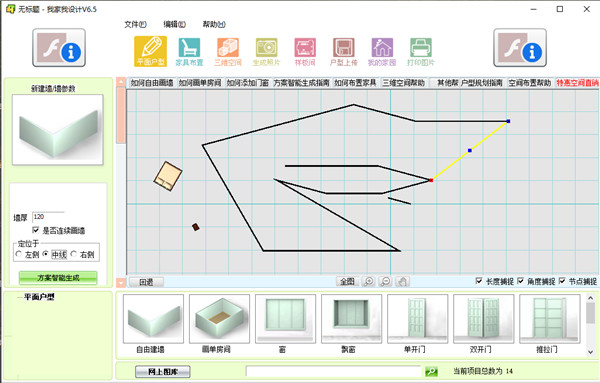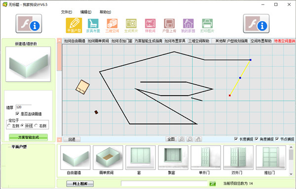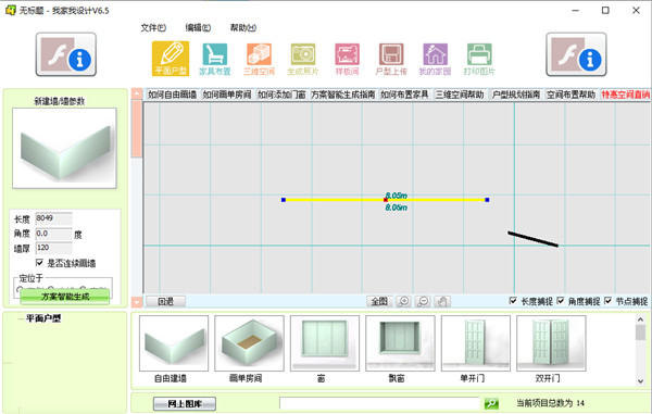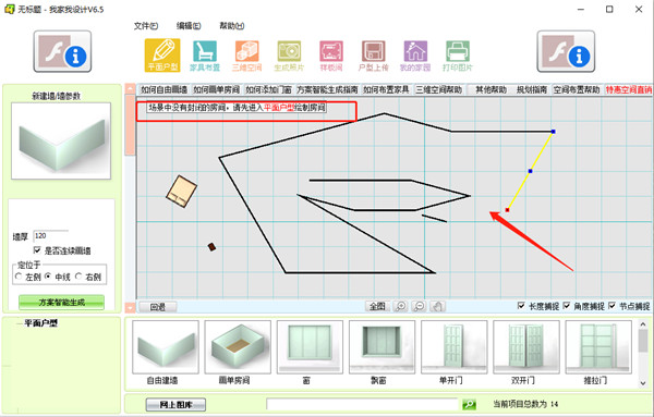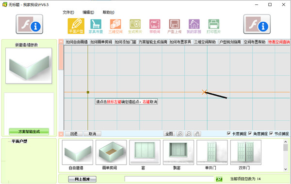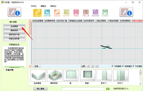 在這里用戶如果不會某項功能,用戶可以直接點擊相應的操作教程進行學習操作,例如用戶不知道怎么畫墻,即可點擊界面上的“如何自由畫墻”進行畫墻上的操作