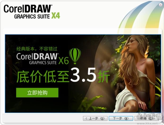 7.一切信息設(shè)置后進(jìn)入到CorelDraw X4的安裝進(jìn)度條界面,在這個(gè)界面里,我們除了等待其自行安裝完畢以外,還可單擊CorelDraw X4綠色部分查看一些功能介紹哦。