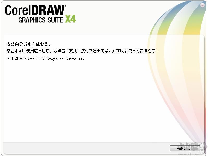 8.最后,CorelDraw X4安裝完成,我們單擊【完成】按鈕即可。