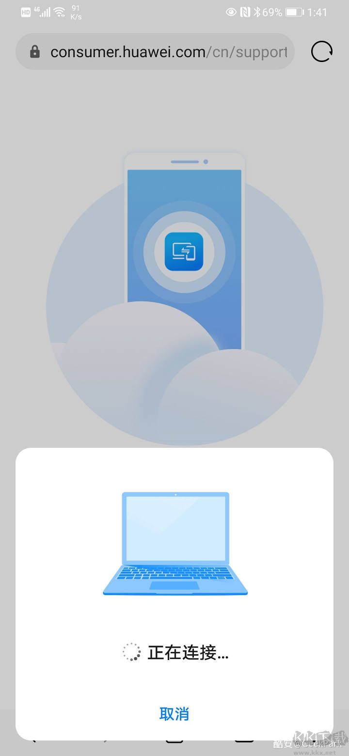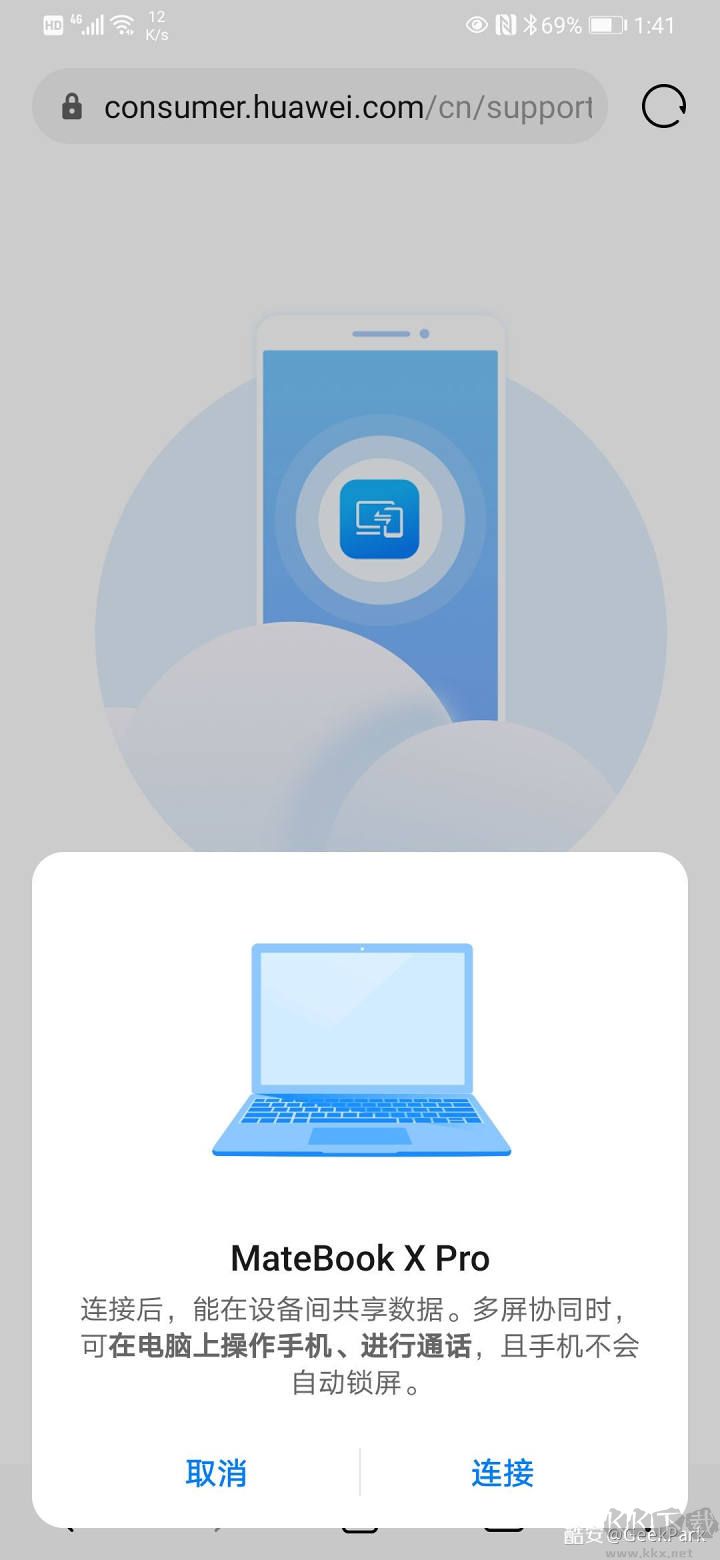 2、連接成功,這里顯示MateBookXPro是因為咱們前面下載的華為電腦管家是這個型號的。