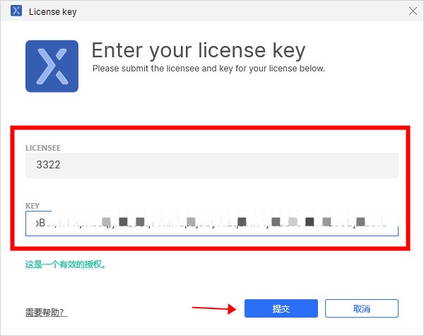 8、將激活碼輸入對(duì)應(yīng)的位置,點(diǎn)擊提交即可完成版本激活;
