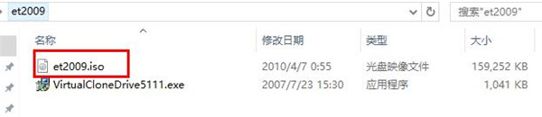 1、解壓壓縮包,然后點(diǎn)擊“et2009”,注意這里不要去解壓,確保電腦有安裝虛擬光驅(qū)軟件,如:DAEMON Tools Lite,然后就直接雙擊打開iso鏡像文件即可。
