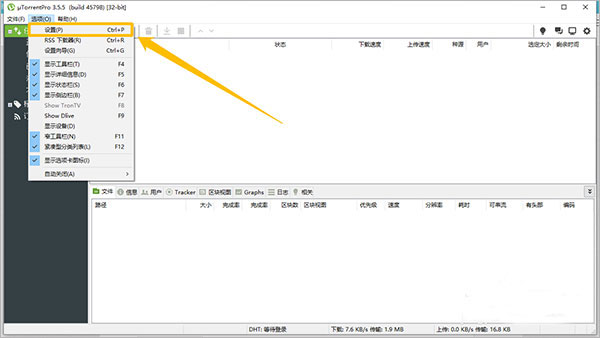 3、在“uTorrent Pro”主界面中,點(diǎn)擊左上方的“選項(xiàng)”按鈕;