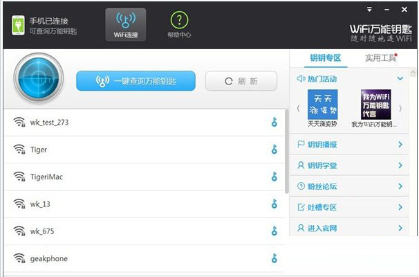 WIFI萬能鑰匙PC版即WIFI萬能鑰匙電腦版本,可以讓用戶在電腦上使用WIFI萬能鑰匙,隨時隨地都有網(wǎng)絡(luò)可用,是真正的免費(fèi)上網(wǎng)神器,有需要的用戶趕緊下載體驗(yàn)吧!