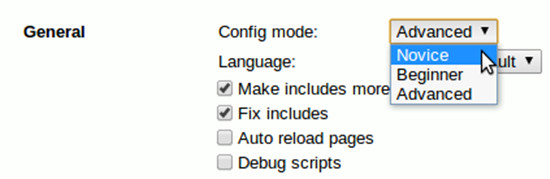 您可以為設(shè)置頁(yè)面在三種不同的等級(jí)中進(jìn)行選擇。不常用的選項(xiàng)將被隱藏,通過(guò)這種方式來(lái)簡(jiǎn)化頁(yè)面。
