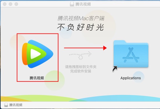 2、然后會(huì)出現(xiàn)一個(gè)彈窗示意我們將“騰訊視頻”拖入到應(yīng)用程序的文件夾中,我們照做,將它拖入進(jìn)去即可