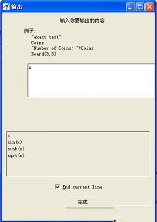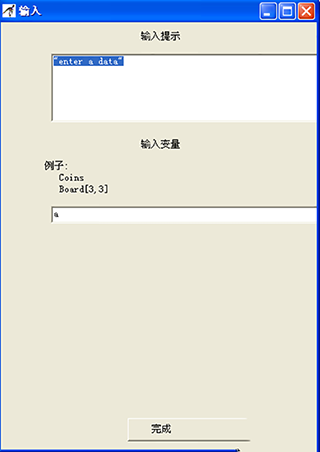 3、雙擊剛剛添加的哪個輸入框,會出現(xiàn)一個提示框,在輸入提示框中輸入提示信息,注意提示信息要用英文的雙引號包括起來。在輸入變量中輸入變量名。完成之后,單擊"完成"。