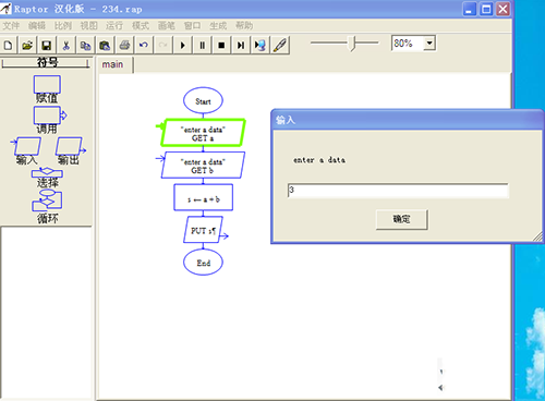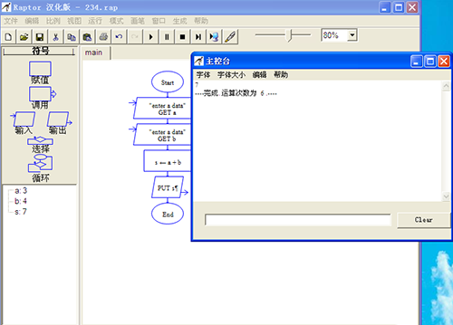 2、Raptor開發(fā)環(huán)境是可視化的,可以一次執(zhí)行一個圖形符號,以便幫助用戶跟蹤RAPTOR程序的指令流執(zhí)行過程。