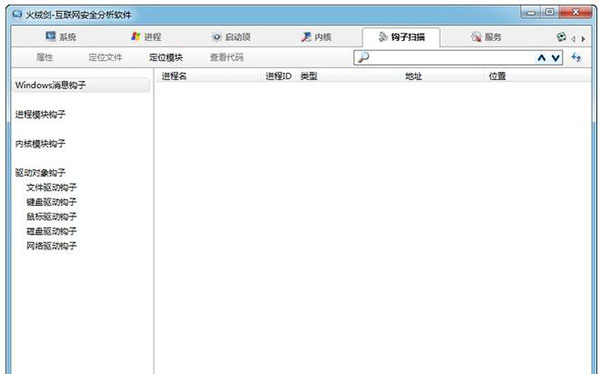 1、首先打開上方選項欄的鉤子掃描,然后選擇左側(cè)的列表,對想要搜索的內(nèi)容進行掃描,一些已經(jīng)開啟的軟件,可以在進程中查找,想要查找鍵盤鼠標相關的則可以查找相應內(nèi)容。