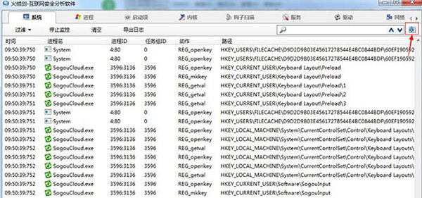 3、與著位的“ProcessMonitor”專用工具類似,火絨劍帶來了方便快捷的監(jiān)管信息過濾功能。不一樣的是,過濾功能會自動過濾很多無意義的信息,使您用起來比較容易。