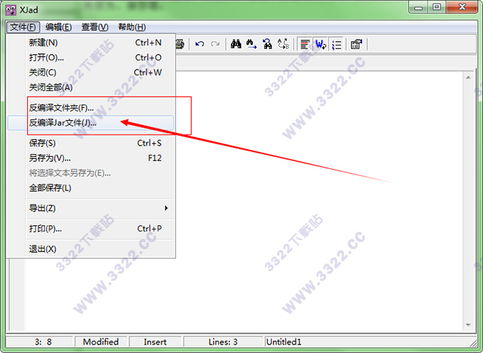2.進(jìn)入xjad軟件界面后,點(diǎn)擊反編譯文件夾、反編譯Jar文件等