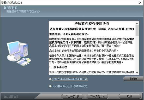 2、運行GstarCAD_Mech2022_STD_STDplat_chs_220120.exe程序,并接受軟件許可協(xié)議,如kkx分享的圖片: