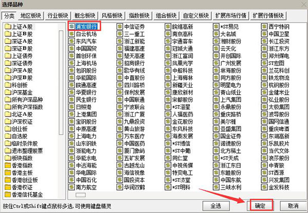 4、我們以浦發(fā)銀行為例,找到之后,點(diǎn)擊右下角的確定按鈕即可。