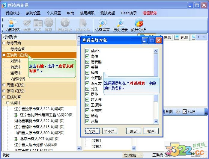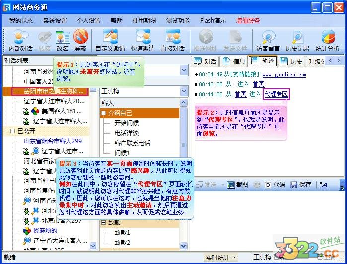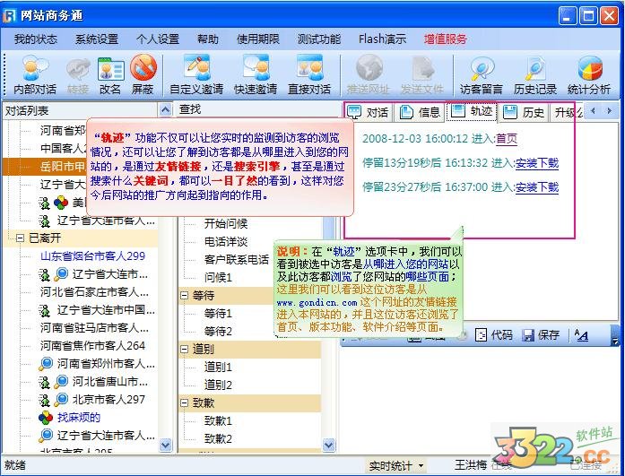 2.利用“軌跡跟蹤”的功能您可以在了解訪客的意向后對訪客發(fā)出主動邀請,從而可以使您的客戶接待更具有針對性和目的性